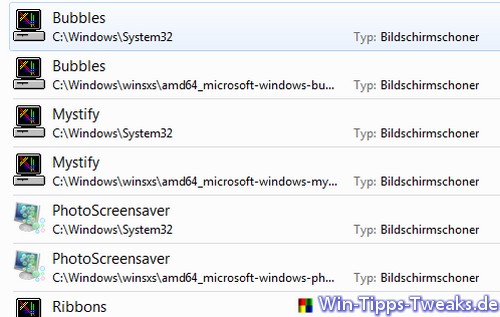 Nach kurzer Wartezeit listet der Explorer alle gefundenen Bildschirmschoner untereinander auf.
