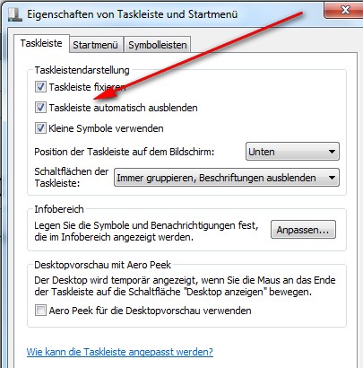 Ich möchte nicht meine Taskleiste grundsätzlich ausblenden.