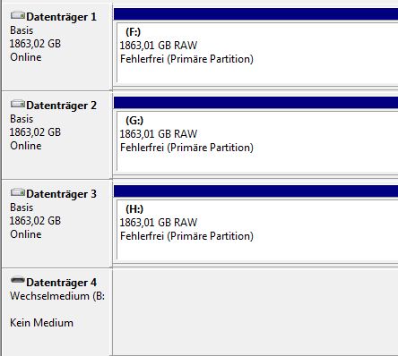 Nun habe ich in der Datenträgerverwaltung nachgeschaut und da stehen tatsächlich die drei mit "RAW" gekennzeichnet !?