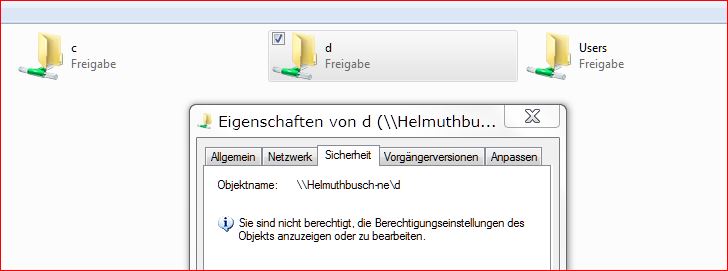 ich habe meinen PC und mein Netbbok in einem Heimnetz verbunden. ( beide haben Win7) Ich sehe auch beide, auf beiden Rechnern, wenn ich auf Netzwerk klicke. ich habe alles freigegeben, für alle, mich und jeden. trotzden kommt jedesmal diese Fehlermeldung, wenn ich auf irgendeinen ordner klicke: