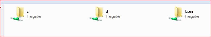 Alle Ordner und Laufwerke zeigen das Freigabezeichen.