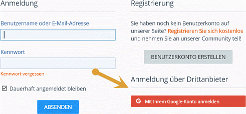 Wer also nicht noch einen zusätzlichen Login verwalten will, kann nun durch einen Klick auf "Mit ihrem Google-Konto anmelden" ein Benutzerkonto erstellen.