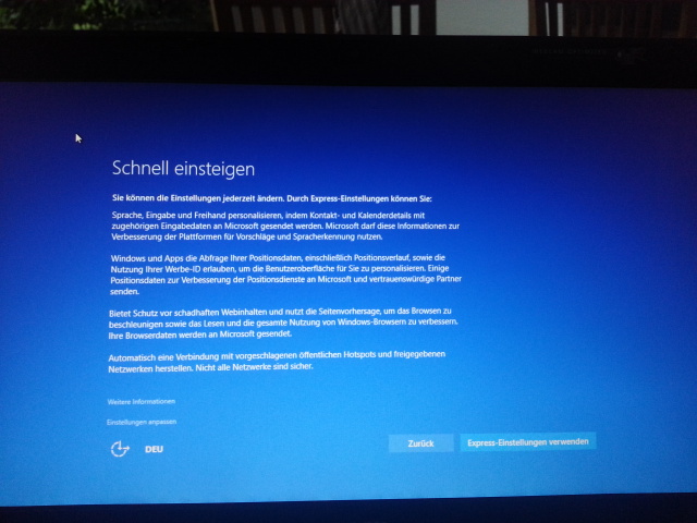 Express-Einstellungen auswählen und dann ist gleich soweit.